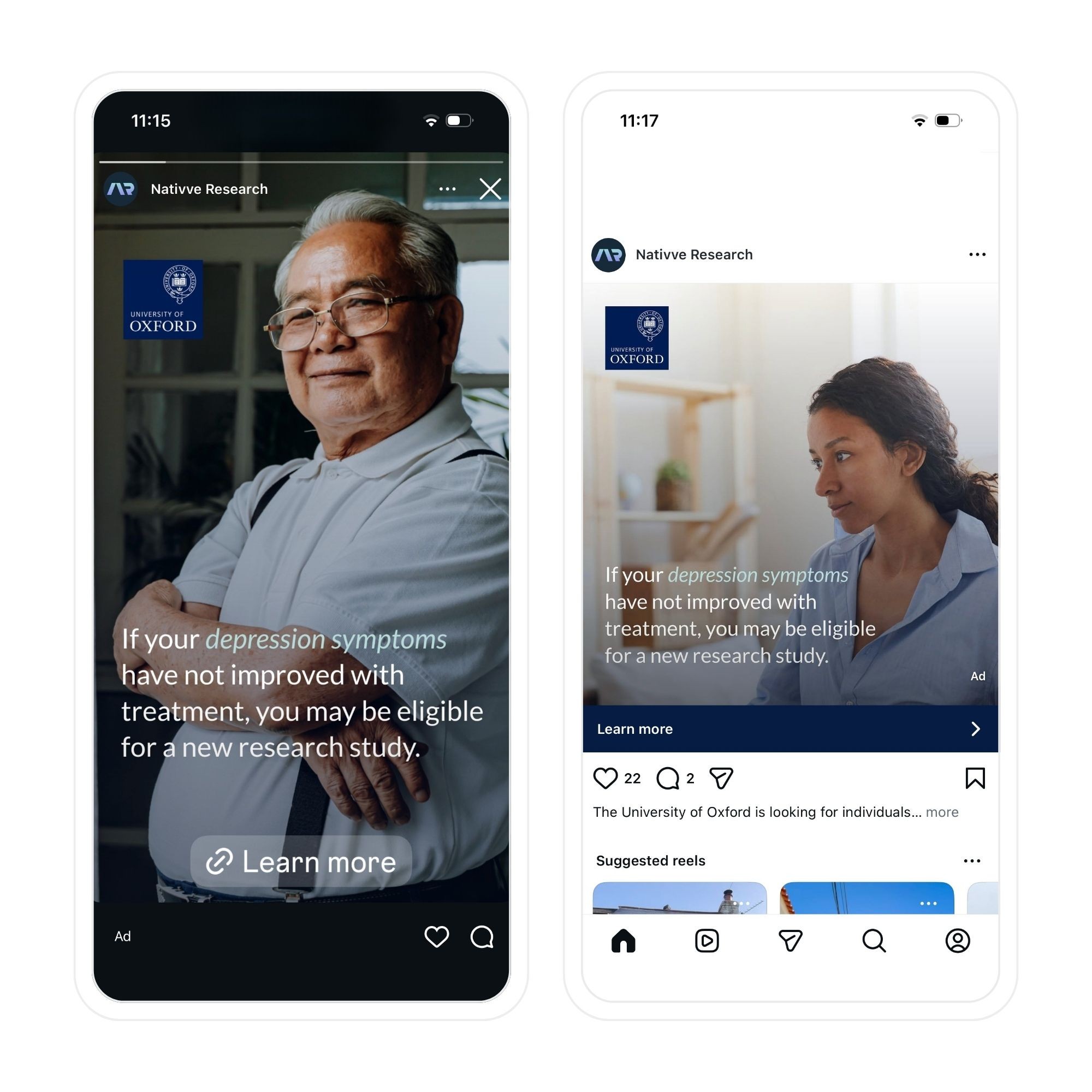 Having supported multiple mental health and wellbeing trials over the years, we were confident in our strategy for this recruitment campaign. We ran ads on Meta and Google, showing the ads over 500,000 times. Our campaign helped the study team enrol 88 participants.